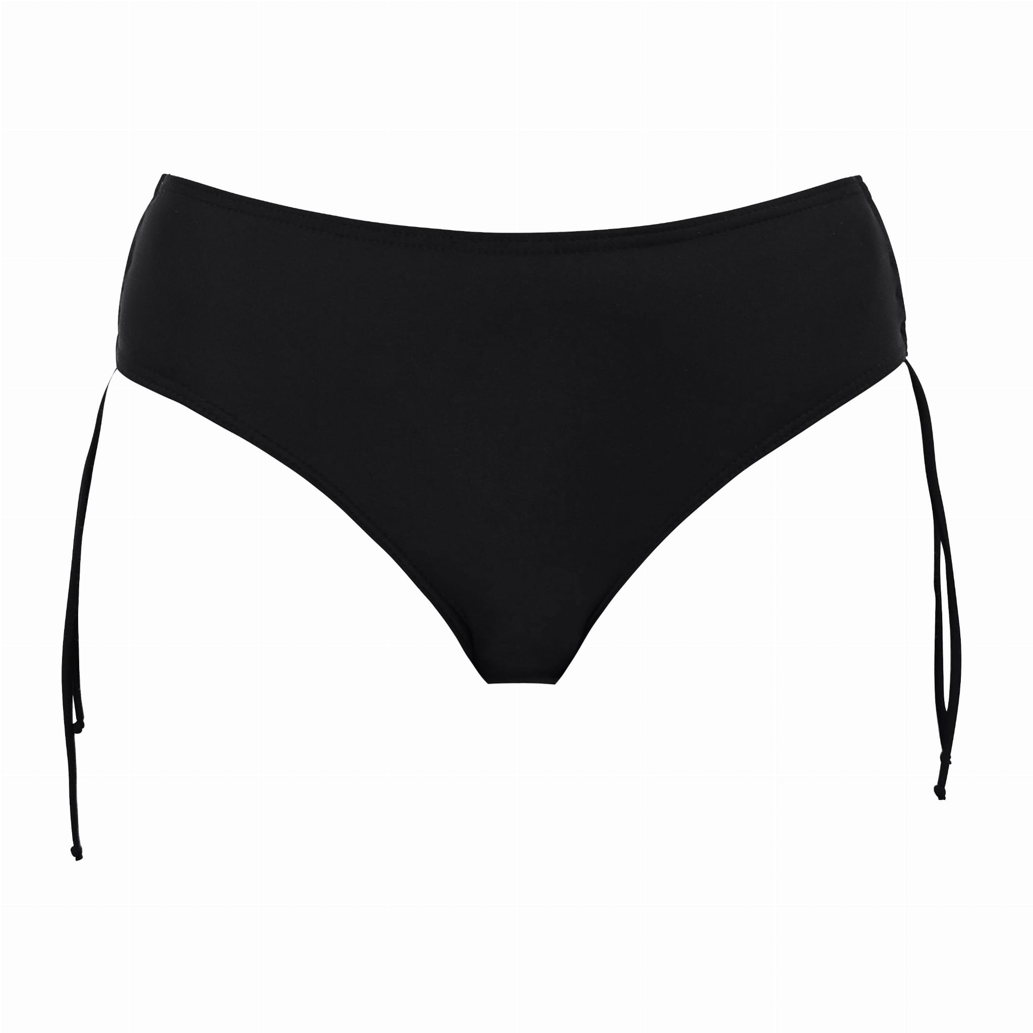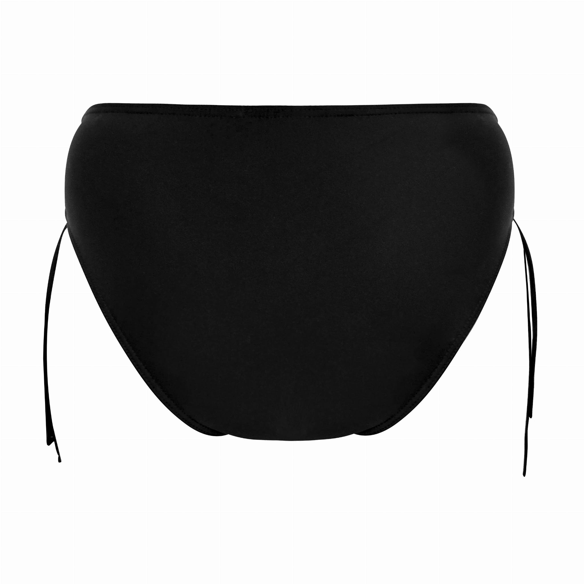 Czarne figi z dwuwarstwowego ,delikatnego materiału .Model w klasycznym kroju z makaronami po bokach .Sznurkami możemy wyregulować wysokość boczków majtek i nadać im bardziej seksowniejszy fason. Idealnie nadają się na plażę jak i na basen.