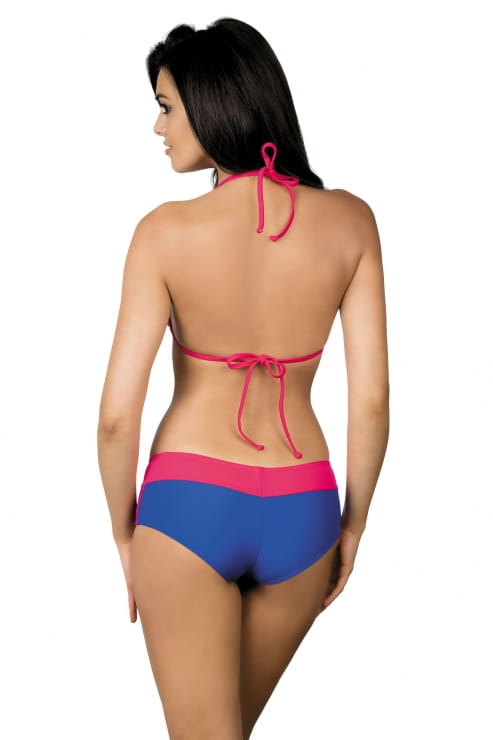 Dwuczęściowy kostium kąpielowy dla aktywnych kobiet na basen i na plażę.Biustonosz o fasonie klasycznego bikini z wyjmowanymi wkładkami ,komfortowo wiązany na plecach i szyi.Figi- szorty idealnie dopełniają całości.Kostium w całości na podszewce ,dzięki czemu nie prześwituje nawet po zmoczeniu.