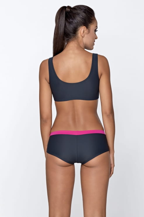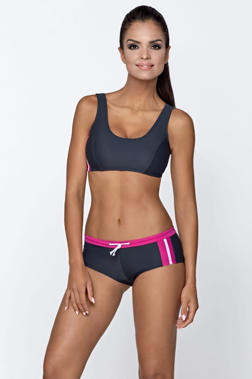 Młodzieżowy , dwuczęściowy kostium kąpielowy dla aktywnych dziewcząt i kobiet idealny na basen i plażę.Kostium w całości na podszewce ,dzięki czemu nie prześwituje nawet po zmoczeniu. Góra w formie topu na wygodnych, szerokich ramiączkach, figi o fasonie dopasowanych szortów.